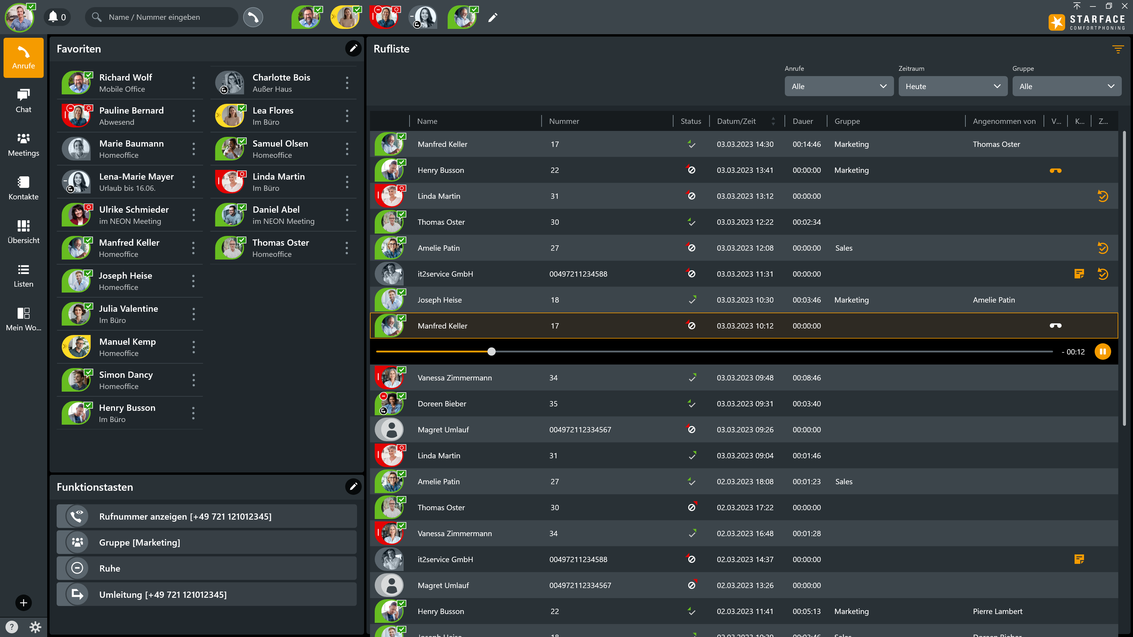 Die STARFACE Desktop Apps für Windows und macOS gestalten Sie individuell nach Ihren Wünschen. Die App wird mit vorkonfigurierten Workspaces ausgeliefert, die völlig flexibel umgestaltet werden können. Passen Sie die einzelnen Funktionen innerhalb der Workspaces nach Ihren persönlichen Anforderungen an und kreieren Sie somit einen völlig individuellen Arbeitsbereich.